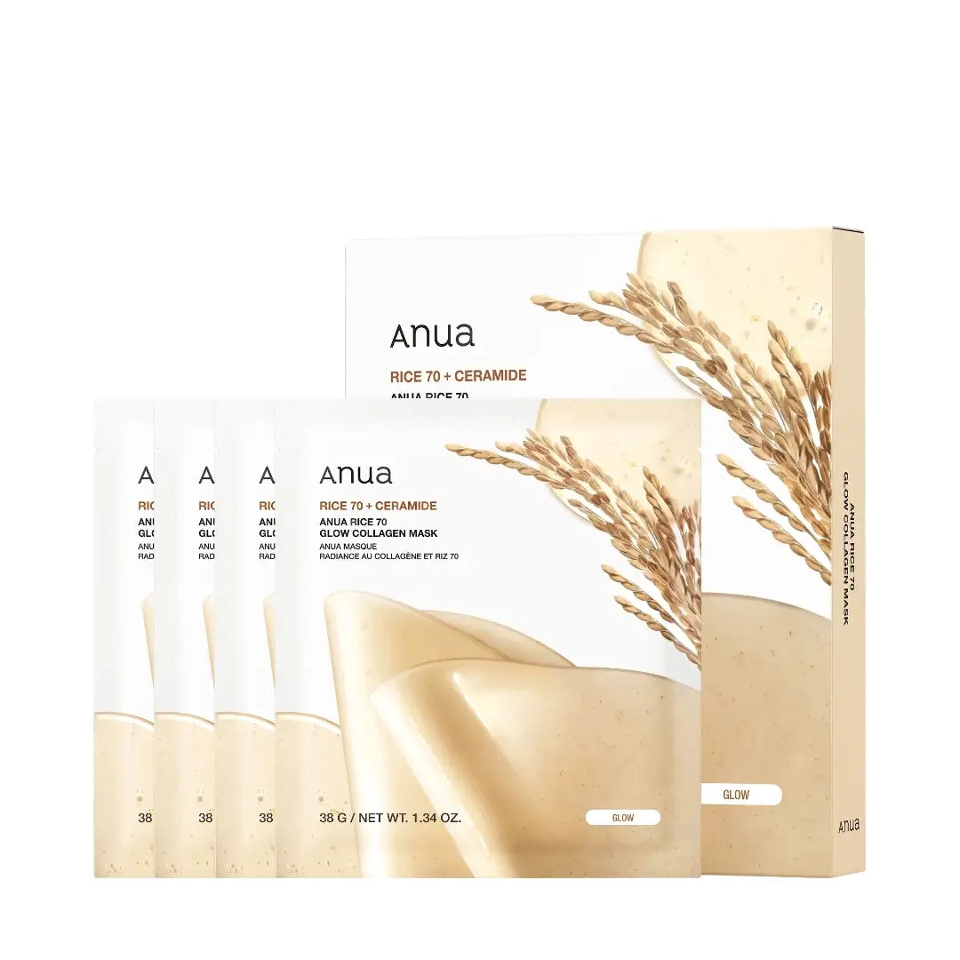 قناع انوا رايس 70 والكولاجين لتوهج البشرة - 4 قطع
