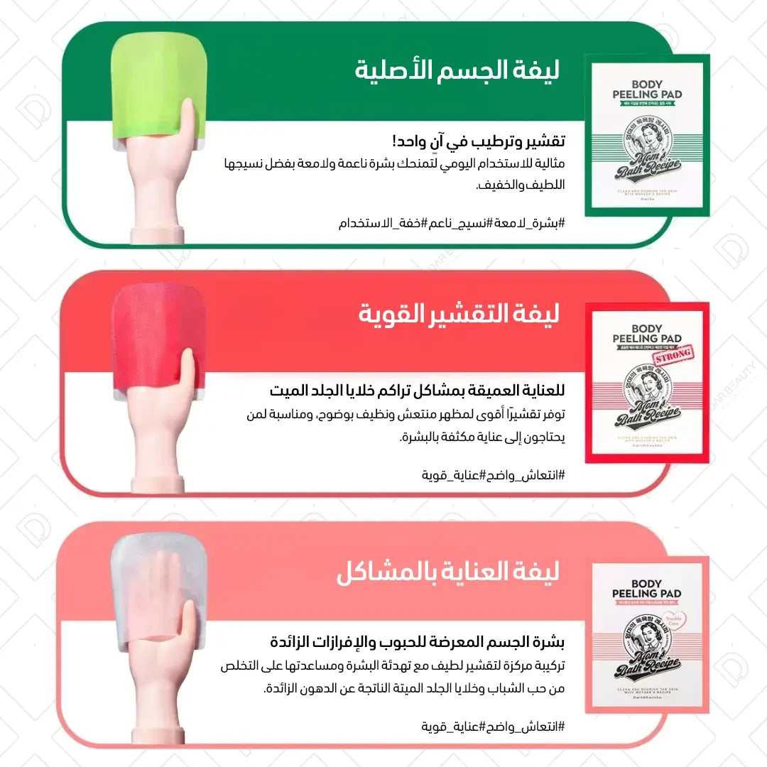 • تتميز بشبكة ماسية ناعمة للتقشير اللطيف اليومي