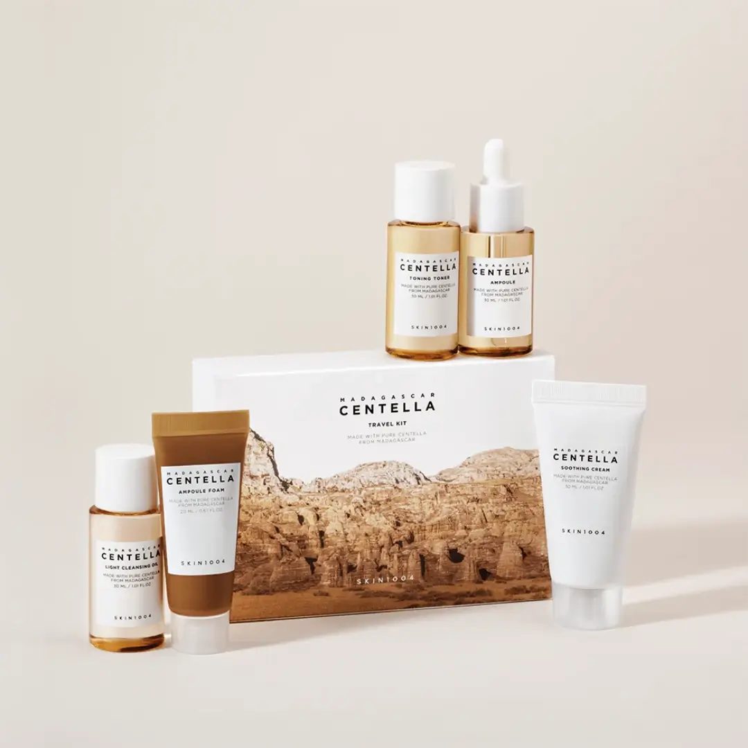 استمتعي بروتين العناية بالبشرة الكامل من سكين1004 بأحجام مناسبة للسفر مع مجموعة السفر مدغشقر سنتيلا. تتضمن هذه المجموعة الشاملة خمس خطوات للعناية بالبشرة وتحتوي على منتجات سكين1004 المميزة المدعومة بخلاصة السنتيلا المنقاة من مدغشقر، والتي تحتوي على 7 أضعاف المكونات المهدئة مقارنة بالسنتيلا العادية. يوفر الروتين الكامل تنظيفاً وتنعيماً وعلاجاً وترطيباً مع فوائد مضادة للالتهابات وتقوية حاجز البشرة والترطيب. مثالية للسفر أو لتجربة مجموعة سكين1004 الكاملة للسنتيلا، توفر هذه المجموعة كل ما تحتاجينه لبشرة هادئة ومتوازنة وصحية المظهر.